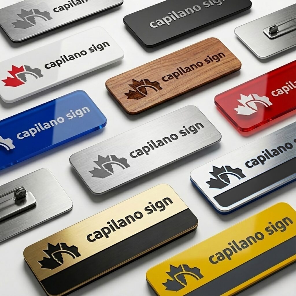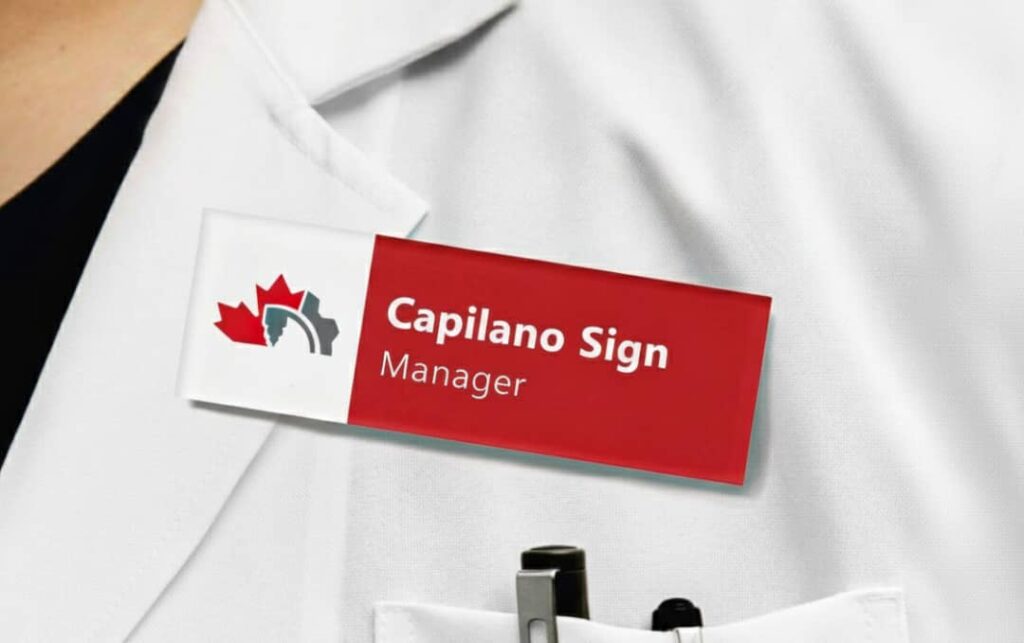 At Capilano Sign Ltd, we design and produce custom name tags for businesses, schools, events, clinics, and organizations.